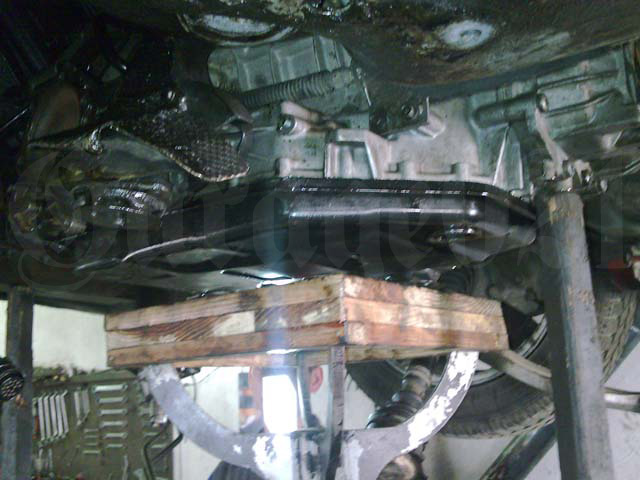 Menjač se oslobađa veza sa motorom, držačima, elementima prenosa snage i komandnim elementima. Pod menjač se postavlja hidraulična dizalica.