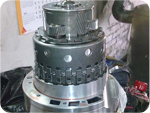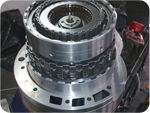 Posle toga se stavlja jos jedan set lamela sa potisnim pločama i set planetarnih zupčanika. Ovako izgleda "radni deo" menjača, pomoću kojeg se vrši prenos obrtnog momenta. Ispred pumpe se nalazi hidrodinamički pretvarač koji nije prikazan na ovoj slici.