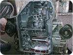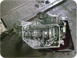 Menjač sa uklonjenim hidrauličnim blokom i vratilom diferencijala.